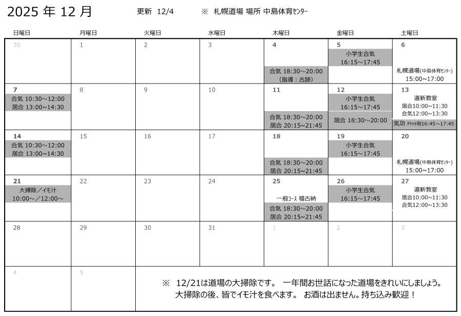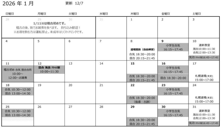 一年以上の長期間、函館・札幌を離れる場合は免除。稽古に参加した月のみ、会費を頂きます。